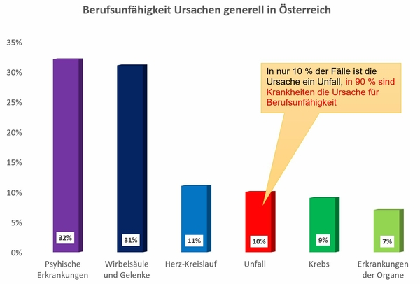 Ursachen für Berufsunfähigkeit in Österreich (Statistiken und Schaugrafiken)